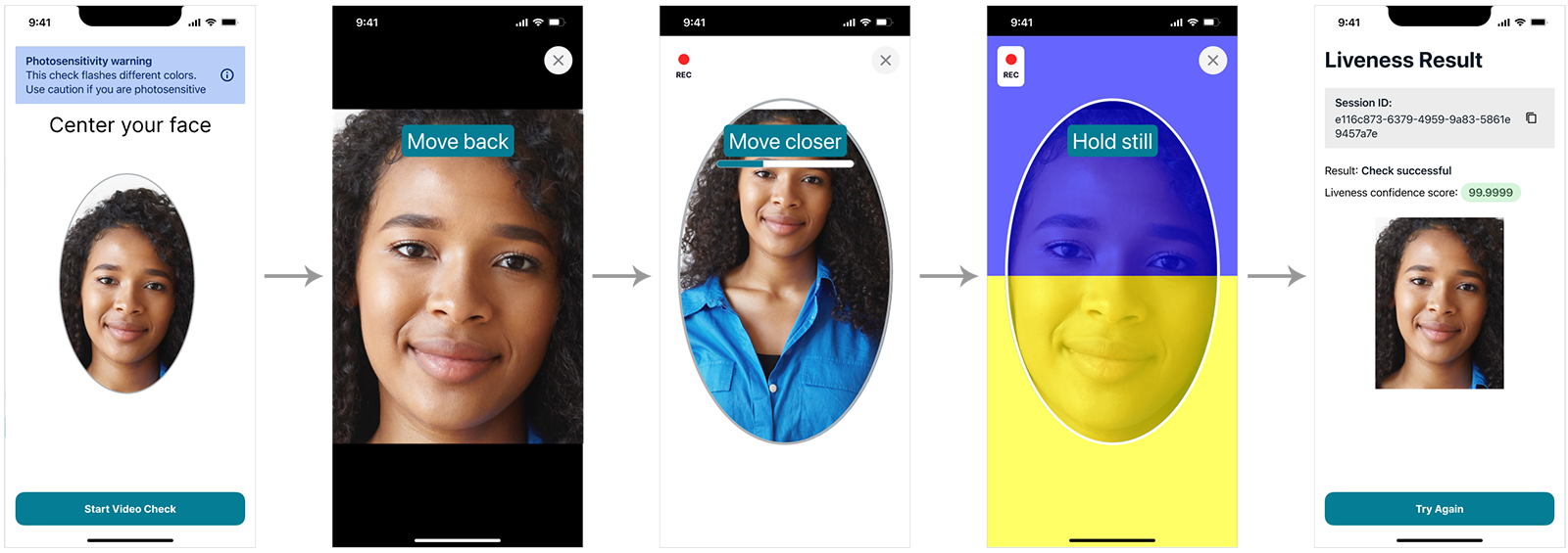 Detect deepfake video on live video call and get a % possibility of Liveness ranging from 0% to 100%.
