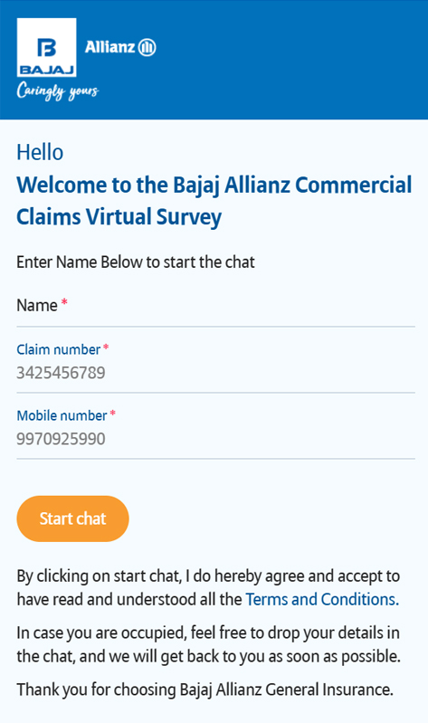 A motor accident claim inspection service on video where customers can connect with advisors over a video call and get their vehicle inspection done.